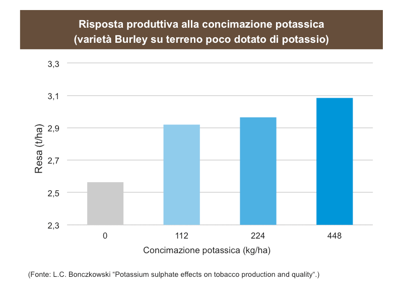 Il potassio esercita una notevole influenza, non solo sulla resa, ma anche sulla qualità del tabacco.