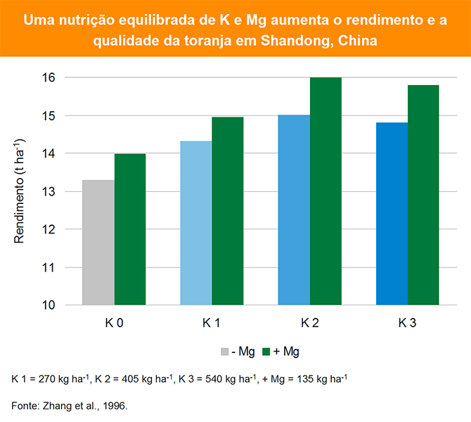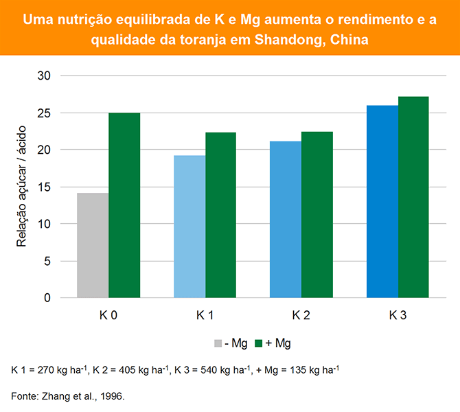 - O magnésio é necessário para uma cor de casca atrativa e garante um ótimo teor de sólidos solúveis, acidez e vitamina C.
