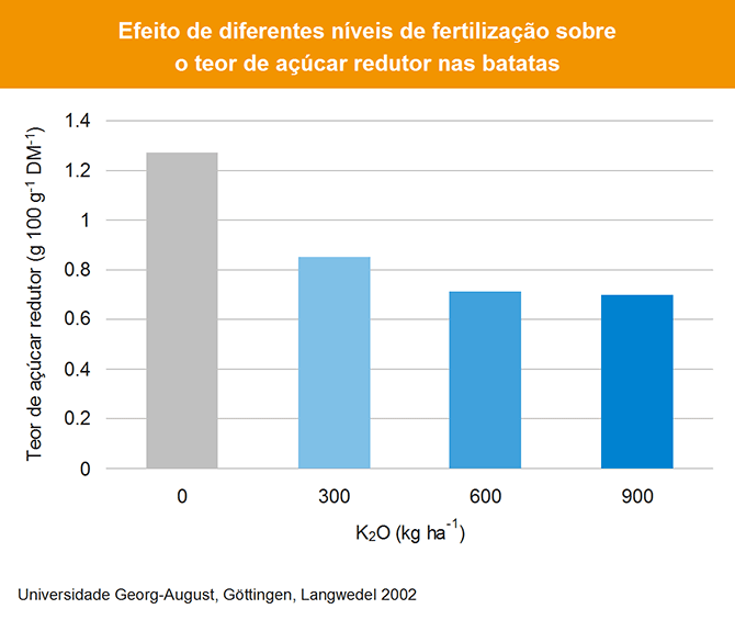• o potássio diminui o teor de açúcar redutor (importante para a indústria de processamento)