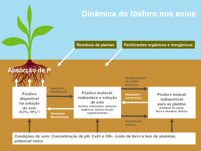 Geralmente, o teor total de fósforo nos solos é elevado. Contudo, apenas uma fracção de fósforo está directamente disponível para a planta e a maioria é adsorvida pelo solo.